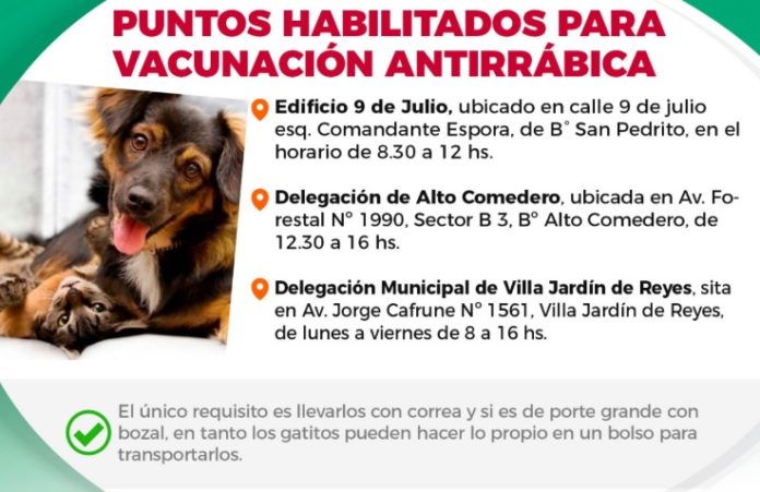 En la capital se instrumenta un plan integral de vacunación antirrábica destinada a caninos y felinos, teniendo en cuenta los protocolos de bioseguridad tanto para los humanos, como para las mascotas. Por ello, con el propósito de prevenir el flagelo de la rabia, se habilitaron puntos fijos donde los propietarios pueden acercar a sus mascotas para la aplicación de dicho suero inmunizante, sin costo alguno.